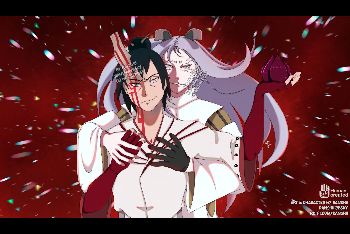 Full rendered pieces in anime style, mostly Boruto/Naruto style but can vary, mostly hard shaded but depending on the character or franchise this may vary slightly (non Naruto/Boruto characters might be drawn in a more personal style that does not attempt to emulate the series, for example, but quality will always be similar).